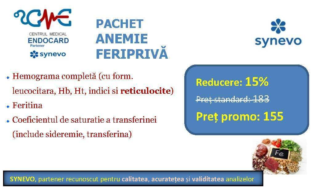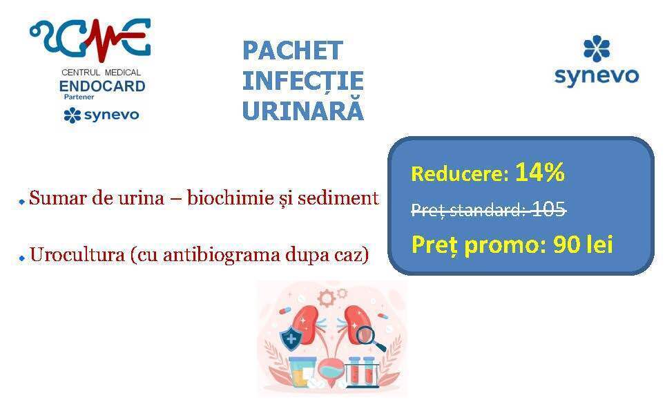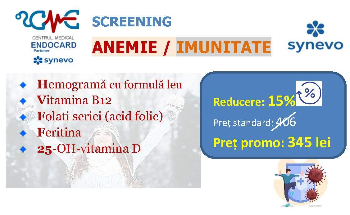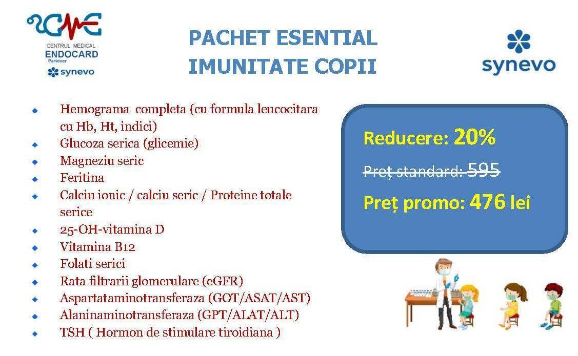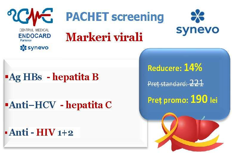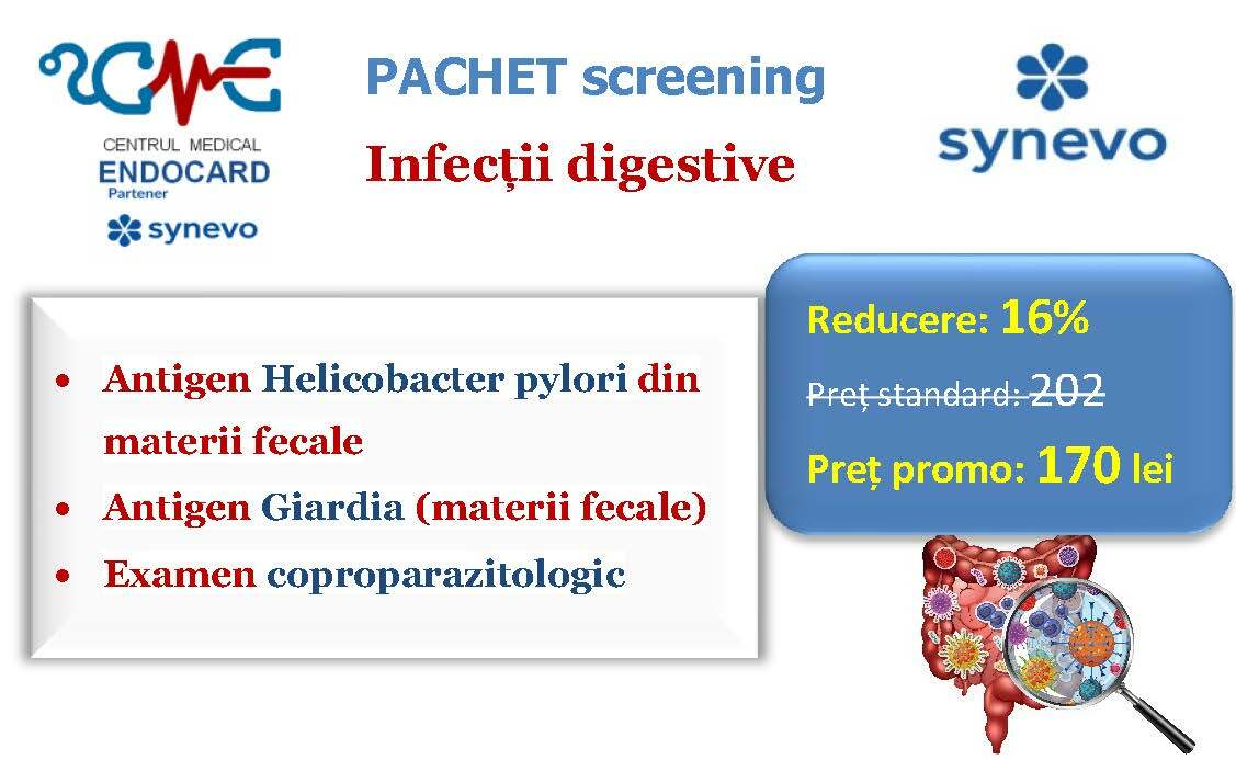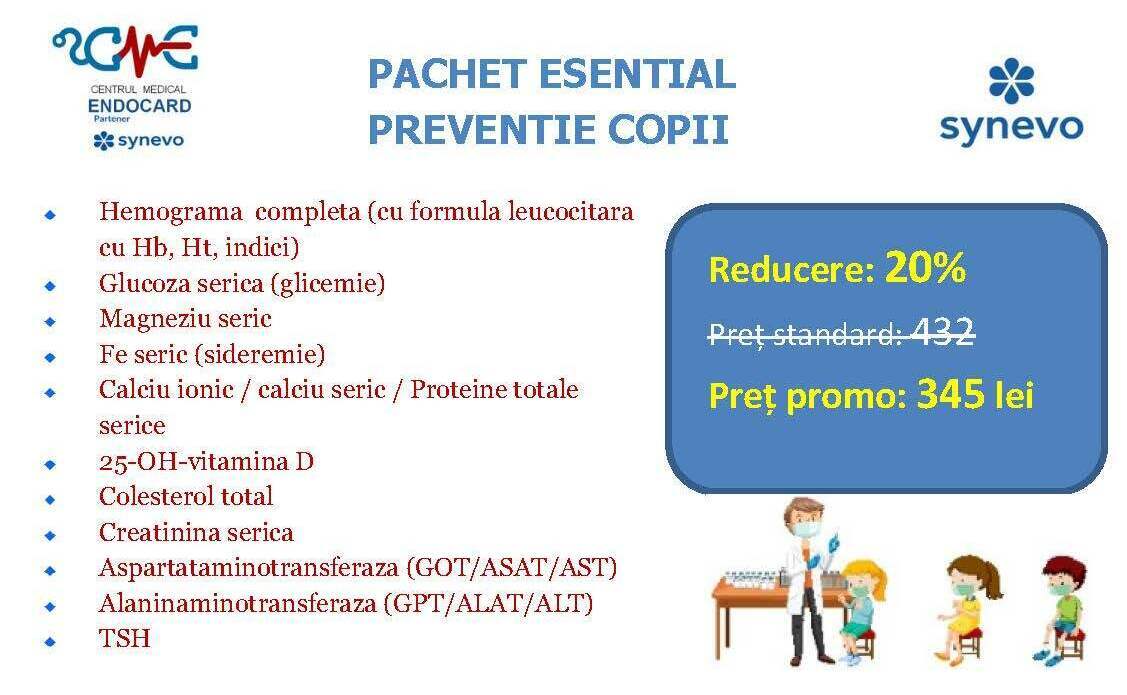 Ofertele / promoțiile derulate de partenerul SYNEVO nu sunt aplicabile la nivelul ENDOCARD, ele sunt active doar în centrele / punctele de recoltare ale acestuia (SYNEVO). Totodată, analizele cumpărate online pe site-ul SYNEVO nu se pot efectua în cadrul centrului ENDOCARD, respectiv se realizează doar în punctele de recoltare ale partenerului.